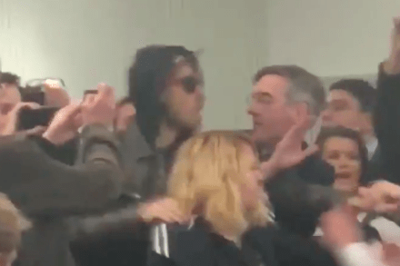 No one puts the Moggster in a corner. He was due to speak to the UWE Bristol Politics and International Relations Society. A bunch of hooded protesters entered the room, and started to shout. There are about a dozen of them, shouting about Brexit, some with their faces covered. The Moggster, rather than taking cover,