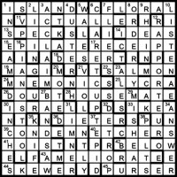 The unclued lights are LAND OF (25A): MILK AND HONEY (11A), CAKES (12A), HOPE AND GLORY (39A), ENCHANTMENT (7D), MY FATHERS (9D) and BEULAH (29D). First prize Adam Hughes, Liverpool Runners-up Richard Stone, Barton under Needwood, Staffordshire; J.P. Green, Uppingham, Rutland