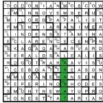 The second and fourth letters of six unclued lights gave abbreviations of the states forming New England: ACATER (13) Connecticut, ERNIE (24) Rhode Island, AMBEROID (27) Maine, ANCHOS (1D) New Hampshire, KVETCHED (22) Vermont and SMEAR (34) Massachusetts. NAG/LEND (17/36) is an anagram of ENGLAND suggesting ‘New England’.   First prize Mike Conway, Grantham, Lincs Runners-up