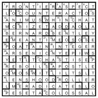 Redundant words were 12A virgin, 16A crazy, 38A mammal, 18D state, 21D greed, 25D tendon, 34D extremist. These respectively defined 14A vestal, 20D lunatic, 6D marsupial, 23D Indiana, 33A cupidity, 15A paxwax, 41A absolutist. Roman gods (underlined) in these words were turned into their Greek equivalents. First prize Nadya James, Heanor, Derbyshire Runners-up Ben Stephenson, London