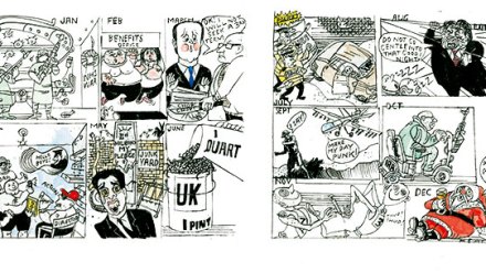 January David Cameron, the Prime Minister, said that only electing the Conservatives could ‘save Britain’s economic recovery’. Labour unveiled a poster saying: ‘The Tories want to cut spending on public services back to the levels of the 1930s,’ and Ed Miliband, the party leader, said he would ‘weaponise the NHS’. Two male ‘hedge witches’ were