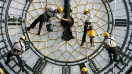 Tough at the top The clocks on Big Ben were cleaned by abseiling window-cleaners. Some other big cleaning/painting jobs: — Repainting the Forth Railway Bridge used to be a metaphor for never-ending work, but a new coating completed in 2012 is estimated to have a life of 25 years. — Sydney Harbour Bridge was, for