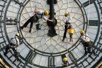 Tough at the top The clocks on Big Ben were cleaned by abseiling window-cleaners. Some other big cleaning/painting jobs: — Repainting the Forth Railway Bridge used to be a metaphor for never-ending work, but a new coating completed in 2012 is estimated to have a life of 25 years. — Sydney Harbour Bridge was, for