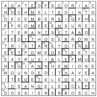 The unclued lights are French words or phrases which include a colour: 2, 10/32, 21A/7D, 21D, 28/8, 36/11, 37/8 and 38/15. Bleu at 8 does double duty, and ‘noir’ and ‘noire’ are the two forms. First prize Jeremiah Carter, Cambridge Runners-up Ian MacDonald, East Grinstead, W Sussex; C.R. Haigh, Hassocks, W. Sussex