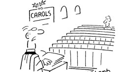 ‘We shall now sing O Come All Ye Faithful, stressing the word “all” in a sarcastic manner.’