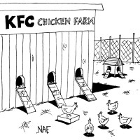 ‘We’re still looking into it, but we’re pretty sure it stands for “Kind, Friendly, Courteous” chicken farm.’