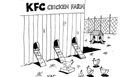 ‘We’re still looking into it, but we’re pretty sure it stands for “Kind, Friendly, Courteous” chicken farm.’