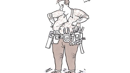 ‘...hammer, chisel, screwdriver, spanner, saw, screws, nuts, bolts...Now all I need is a job.’