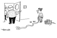 ‘Come in, Tom, excuse the mess, I’m just lagging the wife for winter.’