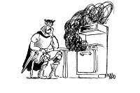 ‘Come in, Tom, excuse the mess, I’m just lagging the wife for winter.’