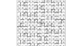 The seven unclued lights are BIRDs (36) minus one letter: (S)WAN (14), (G)ROUSE (18), P(H)EASANT (22), TE(A)L (40), S(W)ALLOW (7), R(O)OSTER (29) and S(K)IMMER (30). GOSHAWK (in the 9th column) was to be shaded. Title: cf. BI(R)D. First prize Oenone Green, Feltham, MiddlesexRunners-up Robert Stephens, Bearsted, Kent; Julia Jones, Pleshey, Essex