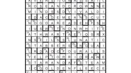 The unclued Across lights are fictional captains and (Down) their ships. 10/24 (20,000 Leagues under the Seas), 11/30 (C.S. Forester series), 13/33 (Moby-Dick), 21/20 (BBC children’s TV) and 22/17 (Treasure Island). First prize Linda Manson, Stoke Holy Cross, Norfolk Runners-up K.G. Osgood, London Colney, Herts; Caroline Sutton, Rhiwbina, Cardiff